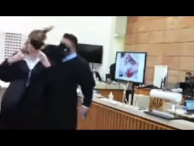 Antes do veredicto, no entanto, a defesa de Manvailer tentou provar a sua inocência "reconstituindo" uma das cenas no crime - o advogado chama uma colega criminalista, a chacoalha e a pega pelo pescoço, como em um enforcamento. Assista à cena: