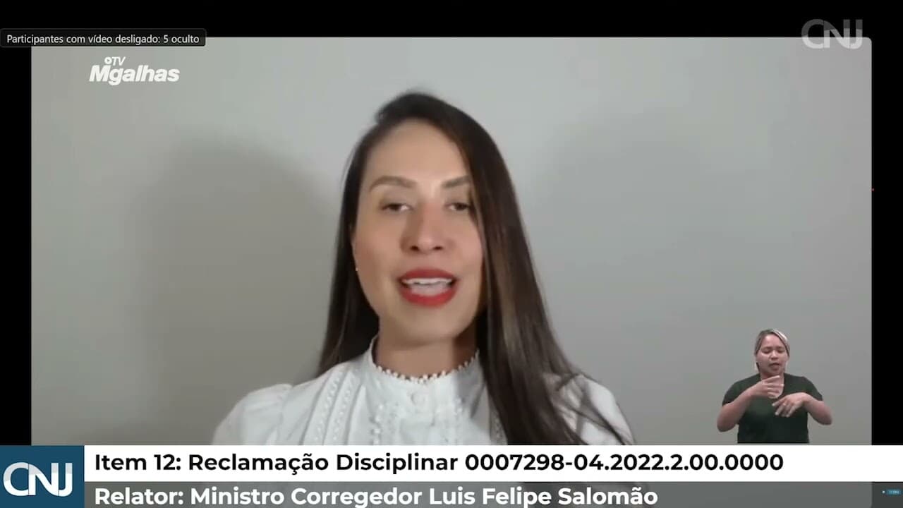 A juíza Ludmila Lins Grilo, do TJ/MG, conhecida por incentivar aglomerações durante a pandemia, manifestou-se durante sessão do CNJ nesta terça-feira, 14. Ela é acusada de não comparecer ao fórum, ter excesso de processos paralisados e baixa produtividade (Processo: 0007298-04.2022.2.00.0000).