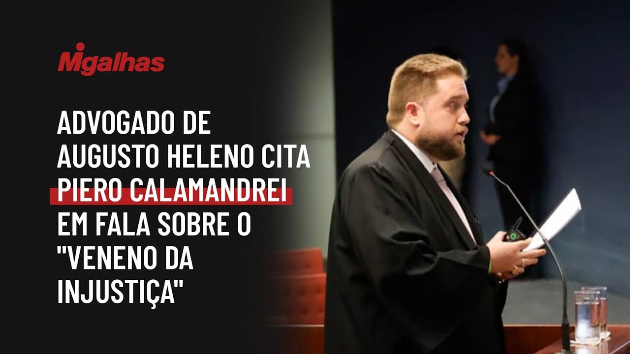 Conhecido por cobrar o "jantar" a Alexandre de Moraes durante sessão de depoimento dos réus, o advogado buscou, novamente, chamar a atenção no plenário. Ele iniciou sua fala citando Piero Calamandrei, em que o jurista fala do perigo do veneno da injustiça: