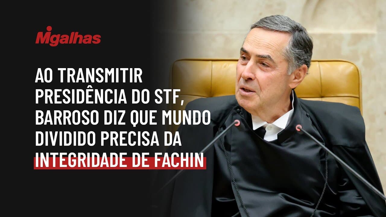 Para Barroso, o novo presidente assume a Corte "num mundo dividido que precisa muito da sua integridade, da sua capacidade intelectual e das suas virtudes pessoais".