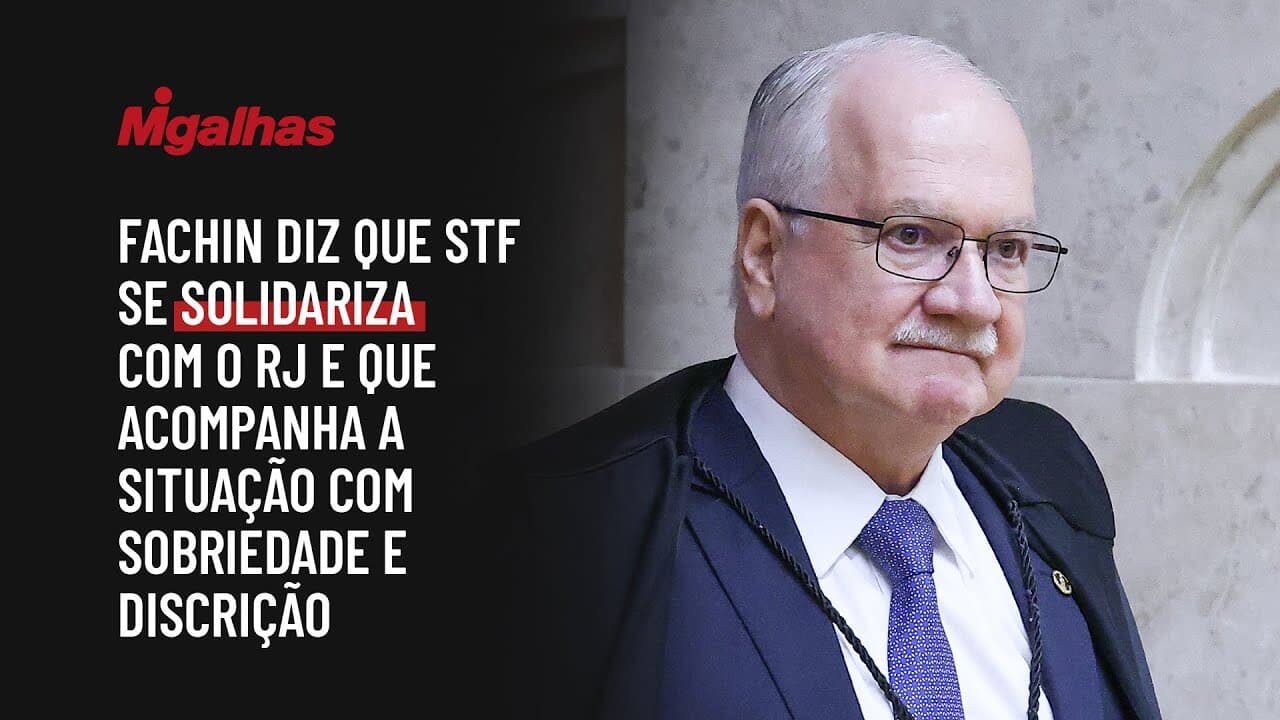 Durante sessão plenária desta quinta-feira, 30, o presidente do STF, ministro Edson Fachin, manifestou solidariedade às vítimas da megaoperação policial ocorrida no Rio de Janeiro.